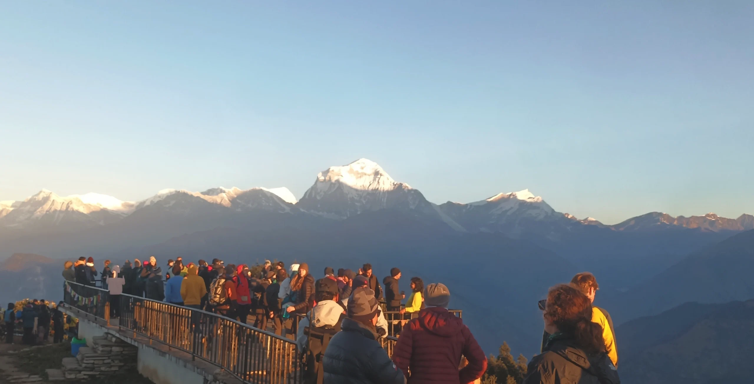 From Poon Hill, you’ll enjoy an almost 270-degree panorama of the Himalayas, including iconic peaks like Annapurna, Dhaulagiri, and Machapuchare (Fishtail), especially breathtaking at sunrise when golden light washes over the snow-capped summits.